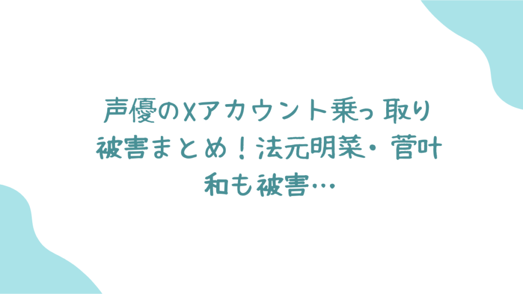 最近発生した声優のXアカウント乗っ取り被害まとめ