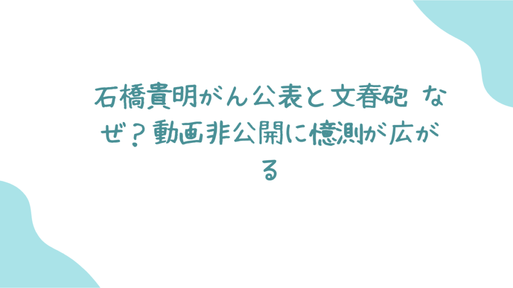 今回は、石橋貴明さんのがん公表から、週刊文春の報道、そして動画の非公開まで、一連の出来事と世間の反応をまとめてみました。