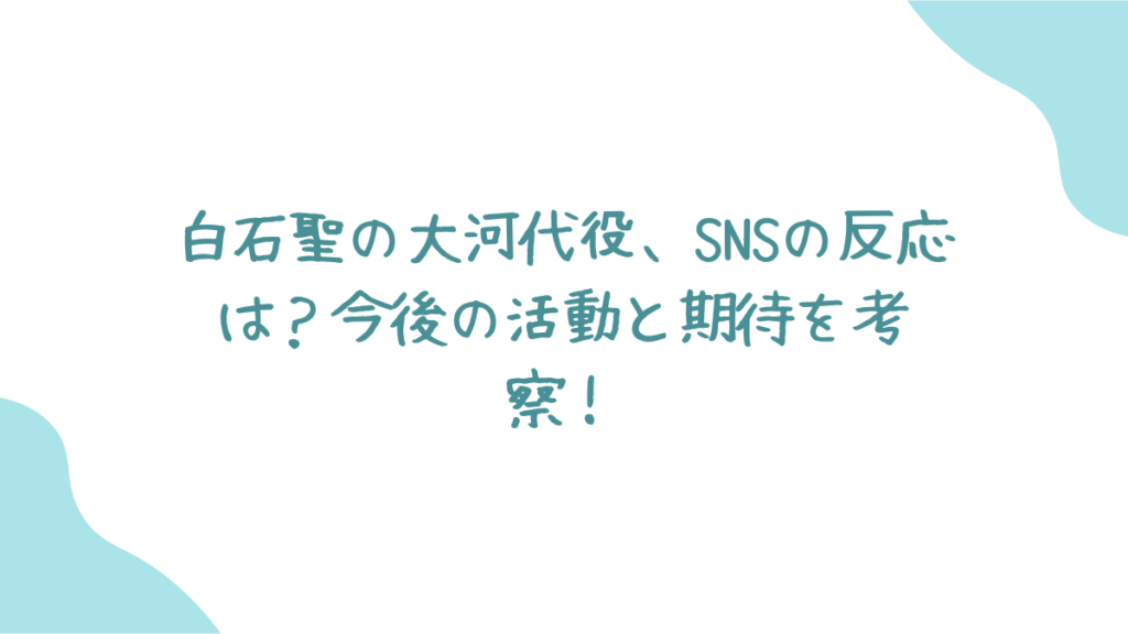 いや~、今回の白石聖ちゃんの大河ドラマ代役決定、本当にいろんな意味で話題騒然だよね!😆 SNSでのみんなの反応を見てると、心配する声もあるけど、それ以上に「頑張ってほしい!」「応援してるよ!」っていう温かい声がたくさんあって、なんだか私まで嬉しくなっちゃったな~🥰
