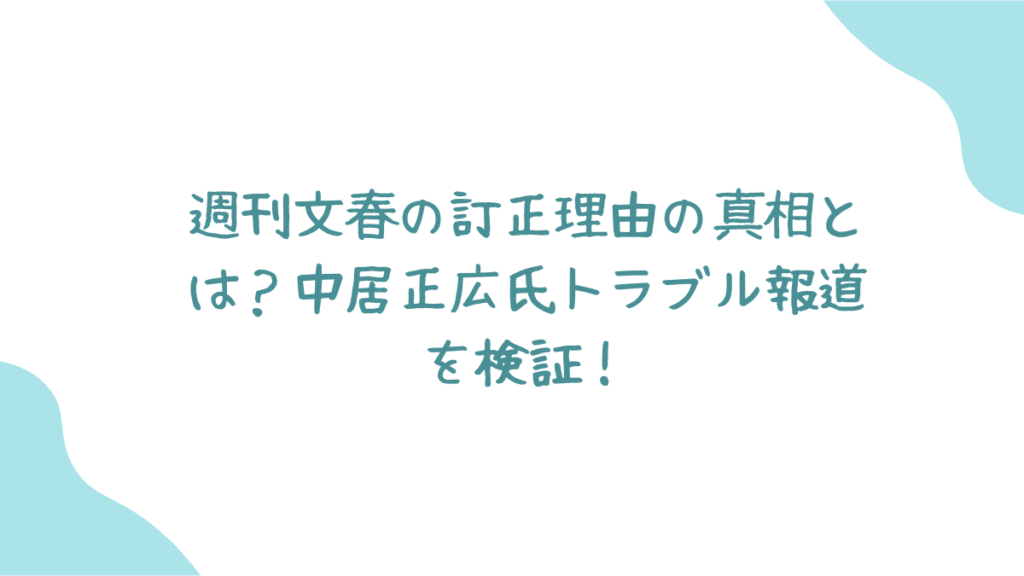 2025年1月、週刊文春が報じた中居正広さんの女性トラブルに関する記事の訂正理由が明らかになりました。この訂正は、なぜ必要だったのでしょうか?