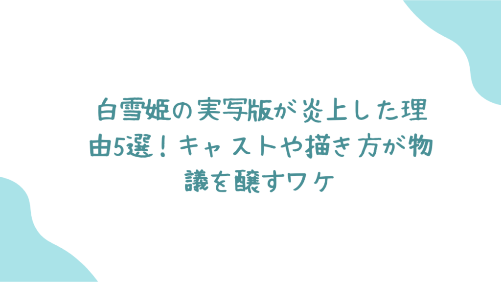 本記事では、白雪姫実写版が批判を浴びた5つの主な理由を分かりやすく解説し、SNSでの反応やディズニーの今後の課題についても掘り下げていきます。