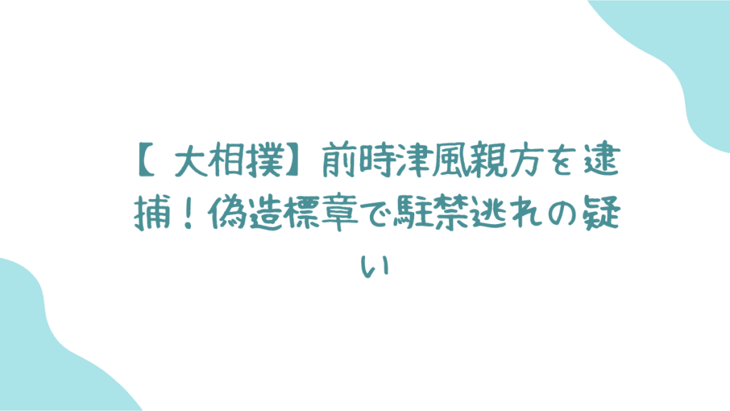 事件の発覚から逮捕に至るまでの経緯や、前時津風親方の過去の経歴、不正に使われた「駐車禁止除外標章」の仕組みについて詳しく解説していきます。