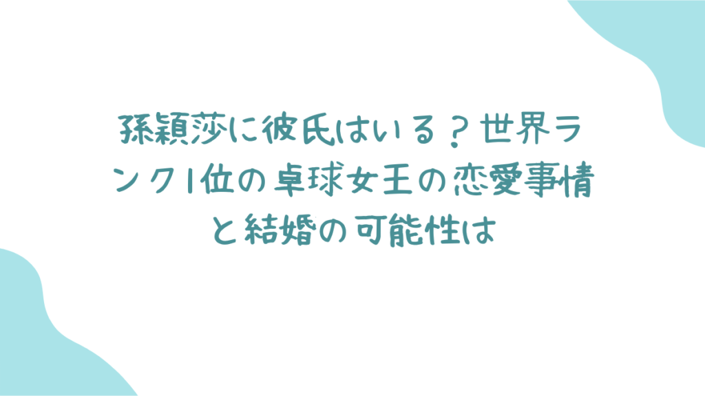みなさん、卓球界の女王・孫穎莎(スン・インシャ)選手って知ってますか?めちゃくちゃ強くて、かわいくて、しかも人柄も素晴らしいんです!そんな彼女の恋愛事情や結婚の可能性について、ちょっと覗いてみましょう。