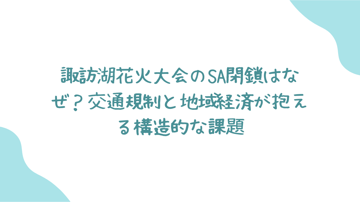 この大規模な交通規制の背後には、「イベントの経済効果」と「市民生活の犠牲」という二律背反が存在します。花火大会は宿泊・飲食・交通など地域経済に数十億円規模の波及効果をもたらす一方で、規制による交通麻痺は地元住民の移動を阻害し、日常生活に大きな負担をかけます。これは、地域の魅力を高める「観光」と、住民の暮らしを守る「生活インフラ」をどう両立させるかという、地方創生における根本的な問いを私たちに投げかけています。SA閉鎖という強硬な手段は、このバランスが崩れ、安全確保という最優先課題が浮上した結果と捉えるべきでしょう。