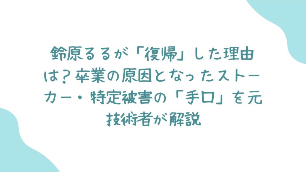 鈴原るるさんの卒業は、「高度化したネットストーカー犯罪」が、ひとりの才能あるクリエイターの活動を奪った痛ましい事例でした。