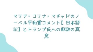 出来事 マリア・コリナ・マチャドのノーベル平和賞コメント【日本語訳】とトランプ氏への献辞の真意 2025年10月10日、ベネズエラの野党指導者マリア・コリナ・マチャド氏へのノーベル平和賞授与というニュースが世界を駆け巡りました。独裁政権下で不屈の闘争を続ける彼女への授賞に、多くの人が胸を熱くしたことでしょう。しかし、その直後に彼女が発... 2025.10.11 出来事