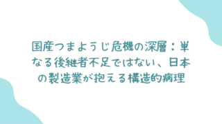 出来事 国産つまようじ危機の深層:単なる後継者不足ではない、日本の製造業が抱える構造的病理 「国産つまようじ、最後の砦が生産危機」―SNSで拡散されたこのニュースを見て、多くの人が日本の伝統技術の衰退を嘆いたことでしょう。50年前に作られた機械が壊れ、修理もままならない。それは確かに衝撃的な事実です。しかし、一度立ち止まって考えて... 2025.08.16 出来事