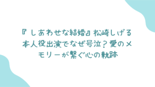 テレビ朝日の木曜ドラマ『しあわせな結婚』で、歌手・松崎しげるさんが本人役としてゲスト出演されました。彼の圧倒的な歌声に、主演の阿部サダヲさん演じる原田幸太郎が感極まって号泣するシーンは、多くの視聴者の心に深く響いたのではないでしょうか。表面...