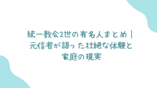 出来事 統一教会2世の有名人まとめ|元信者が語った壮絶な体験と家庭の現実 統一教会の2世信者だった有名人や著名人の体験、壮絶な家庭環境、社会の支援策までを分かりやすく解説。 2025.03.26 出来事