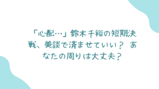 「心配…」鈴木千裕の短期決戦、美談で済ませていい? あなたの周りは大丈夫?