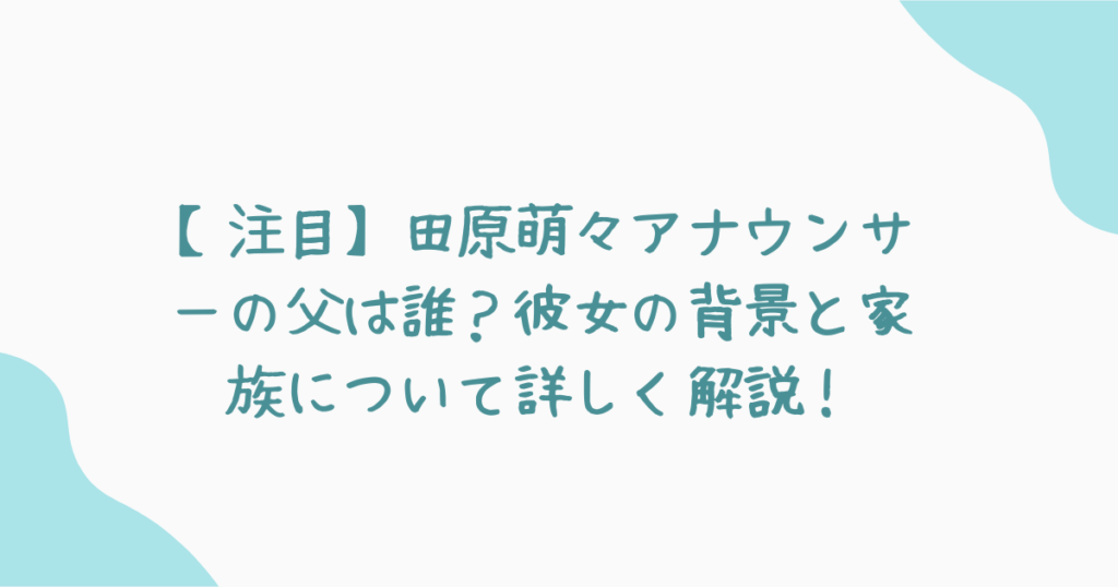 気になる田原萌々の父親とは?家族の秘密を探る!