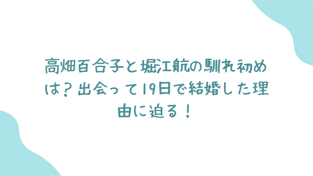 高畑百合子と堀江航の馴れ初め!出会って19日で結婚した理由とは?