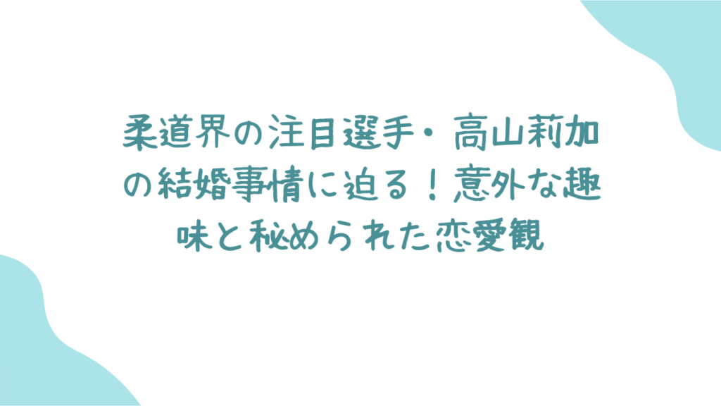 柔道界の期待の星、高山莉加選手。パリオリンピックでの活躍が期待される彼女のプライベートが気になりませんか?実は、高山選手の結婚事情や恋愛については、ほとんど知られていないんです。