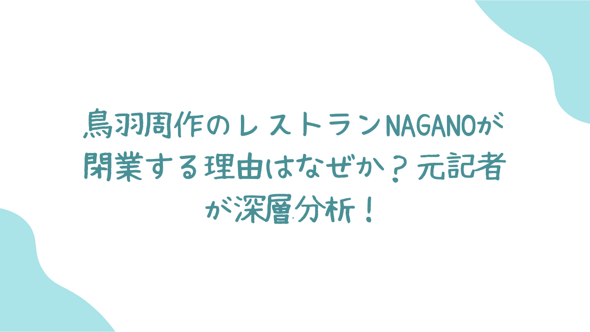 鳥羽周作氏運営「NAGANO」閉業発表の概要