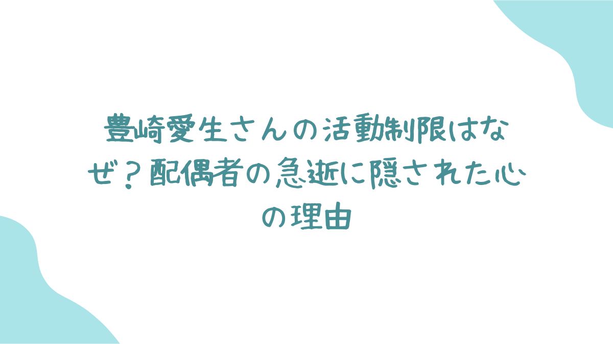 人気声優として多方面で活躍されている豊崎愛生さんが、一部活動制限を発表されました。突然の出来事に驚かれた方も多く、その背景には何があったのか、心配されている方もいらっしゃるのではないでしょうか。