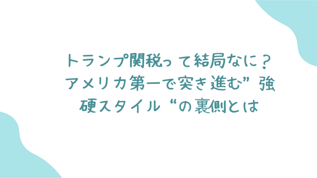 この記事では、“アメリカ第一”を掲げるトランプ大統領のスタイルを、関税というわかりやすい切り口からひも解きます。