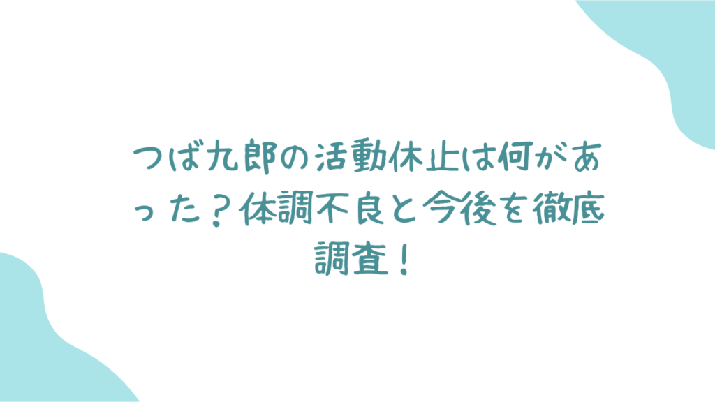 本記事では、活動休止の経緯や体調不良の深刻度、今後の復帰見通しを徹底調査!さらに、つば九郎が出演予定だったイベントへの影響や、ファンの反応も詳しくお伝えします。