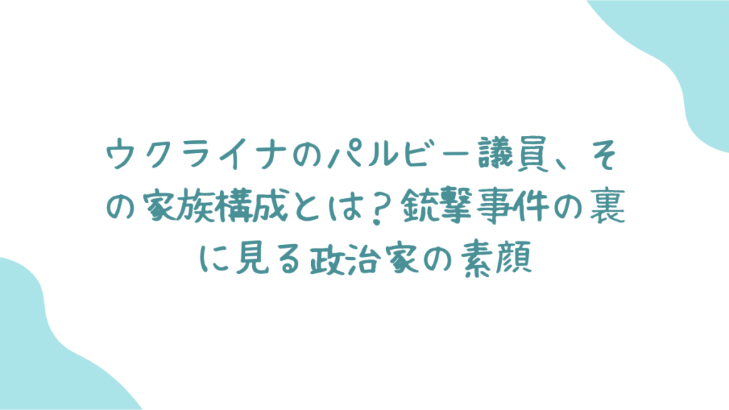 2025年8月30日、ウクライナの最高会議(国会)元議長、アンドリー・パルビー氏が銃撃され死亡するという衝撃的なニュースが世界を駆け巡りました。多くのメディアが事件の異常性を報じる中で、人々の関心は彼の公的な顔だけでなく、これまでほとんど報じられてこなかった私生活、特に家族へと向けられています。