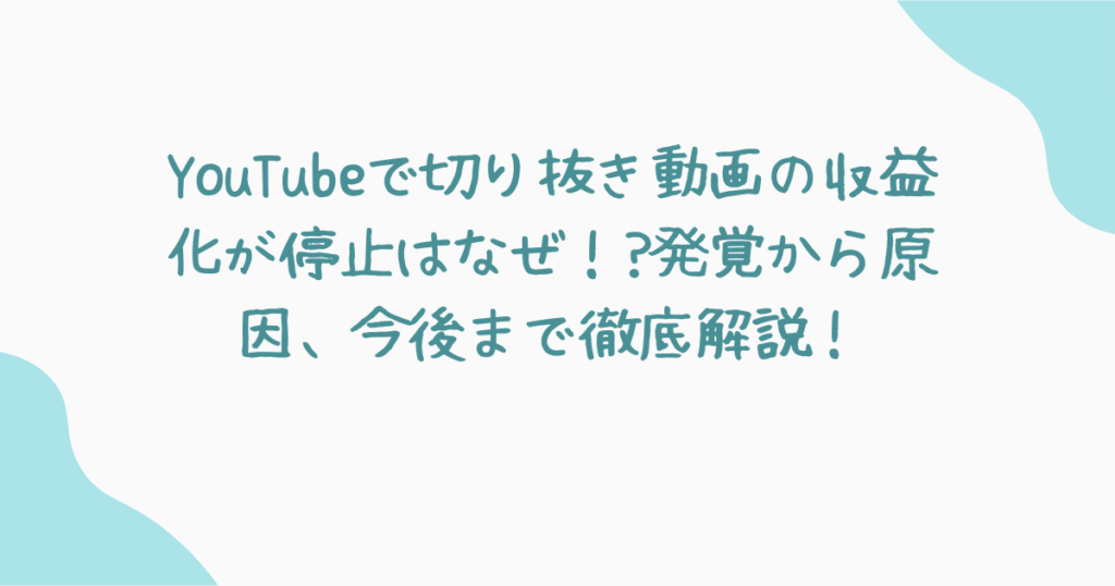 最近、YouTubeで切り抜き動画の収益化が突然停止されるという出来事が多発しています。
