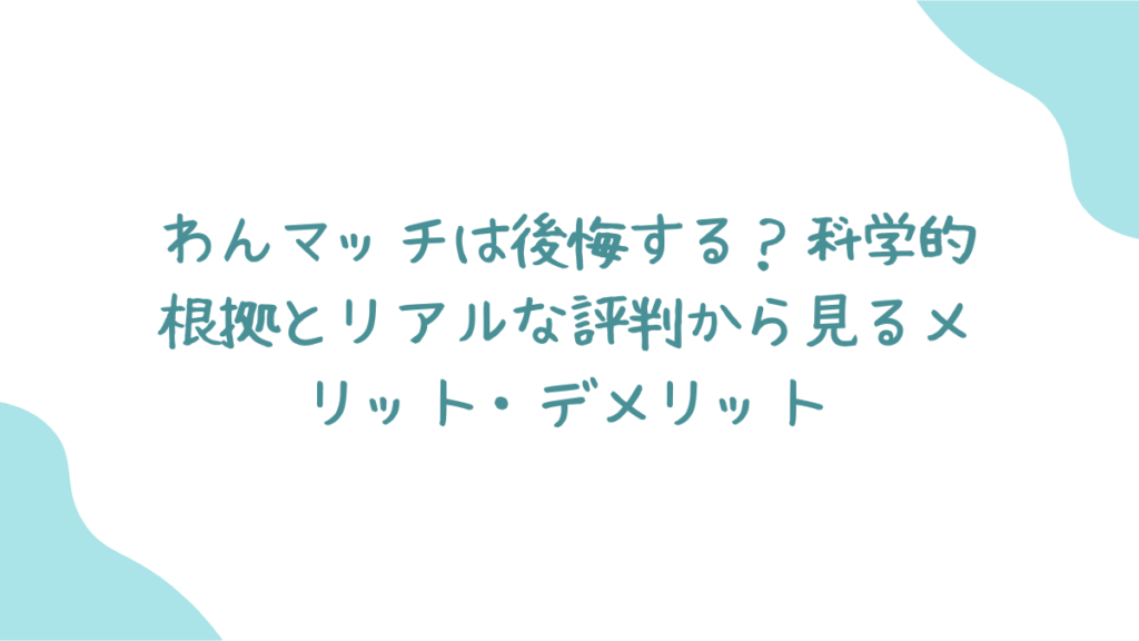 この記事では、わんマッチの仕組みや科学的根拠の詳しい分析はもちろん、リアルな評判、他社サービスとの比較、具体的な使い方まで、あらゆる情報を網羅しています。