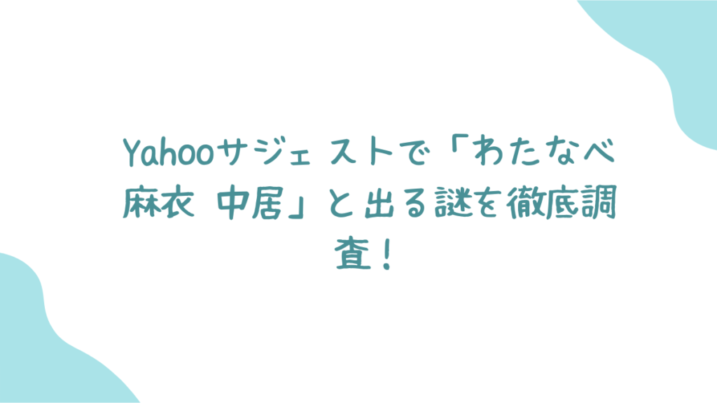 なぜ「わたなべ麻衣 中居」がYahooサジェストに?その謎を解明!