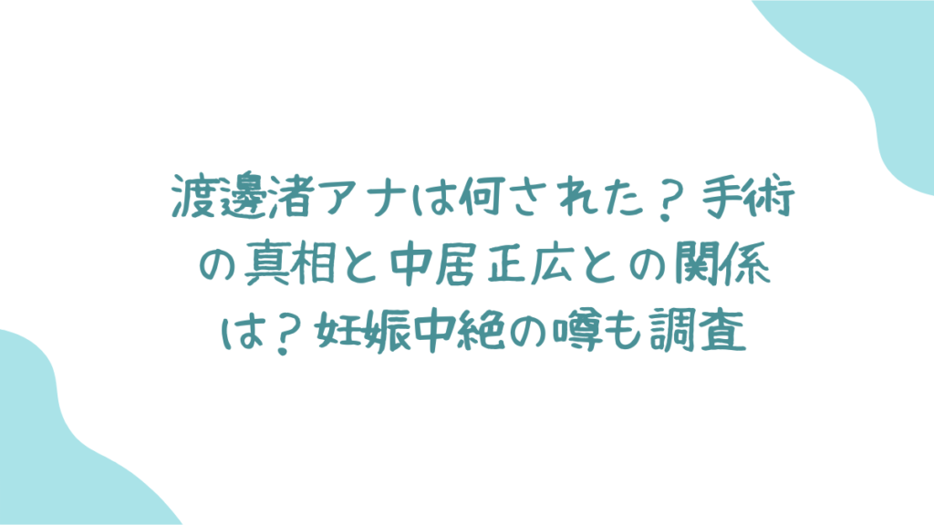 この記事では、渡邊渚さんの休養の理由、手術の内容、中居正広さんとの関係、妊娠中絶の噂など、気になる真相に迫ります。
