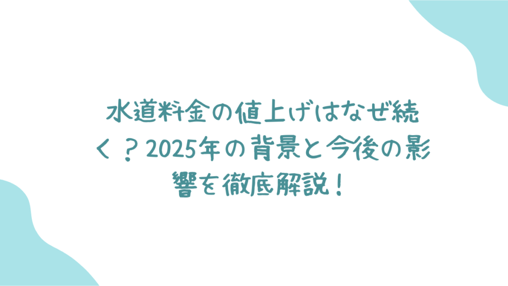 この記事では、水道料金値上げの背景や原因、今後の見通し、そして節水対策まで詳しく解説します。