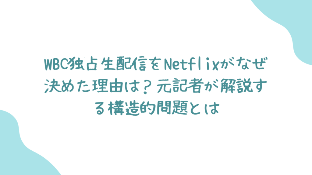WBC独占生配信をNetflixがなぜ決めた理由は?元記者が解説する構造的問題とは