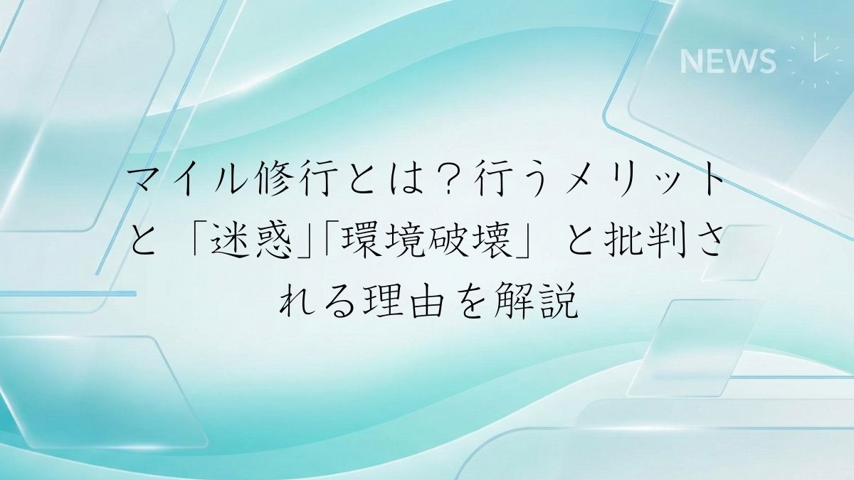 個人の趣味として行われてきたマイル修行ですが、近年は参加者の激増により、様々な摩擦や社会的な問題が生じています。