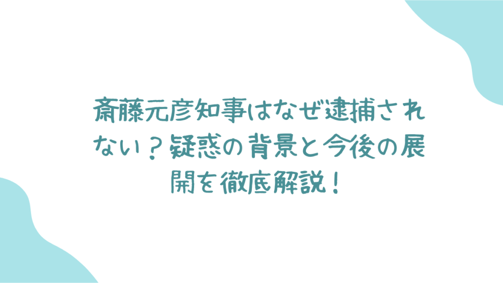 兵庫県の斎藤元彦知事が、公職選挙法違反の疑いで告発されました。しかし、逮捕には至っていません。一体なぜなのか?
