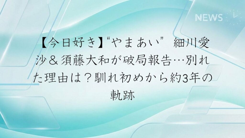 ABEMAの大人気恋愛リアリティーショー『今日、好きになりました。』(通称:今日好き)シリーズの中でも、屈指の人気を誇っていたカップル、“やまあい”こと細川愛沙(あいさ)さんと須藤大和(やまと)さんが、破局したことが明らかになりました。