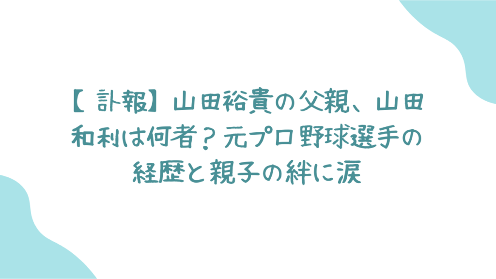 多くの人が気になっている、山田裕貴さんの父親である山田和利さんが、一体何者だったのか。そして、二人の親子の絆について、今回は緊急でまとめてみました。✨