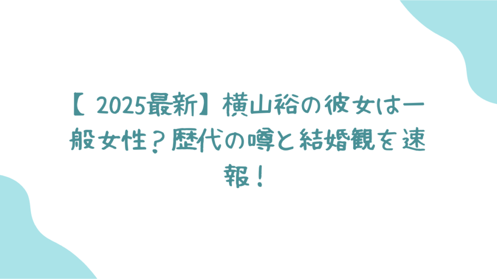 この記事では、気になる「横山裕の彼女は一般女性なのか?」っていう核心に迫りつつ、歴代の熱愛報道から最新の恋愛観まで、一気にまとめてみたよ!さっそくチェックしていきましょう!✨