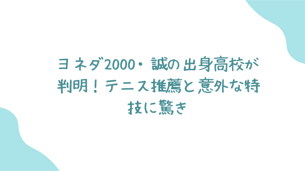 これからのヨネダ2000の活躍が本当に楽しみですね。テレビで見かけたら、「あ、この人テニスも理容師もできるんだ!」って思い出してみてください。きっと誠さんの笑いがもっと面白く感じられるはずです!