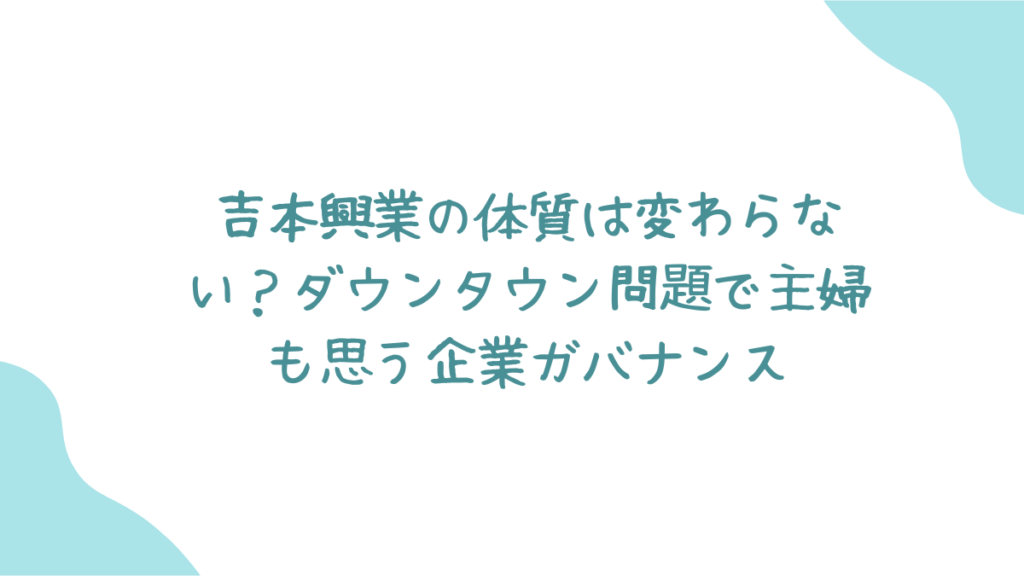今回は、ダウンタウンさんの活動再開のニュースをきっかけに、所属事務所である吉本興業が抱える企業ガバナンスの問題点について掘り下げてきました。
