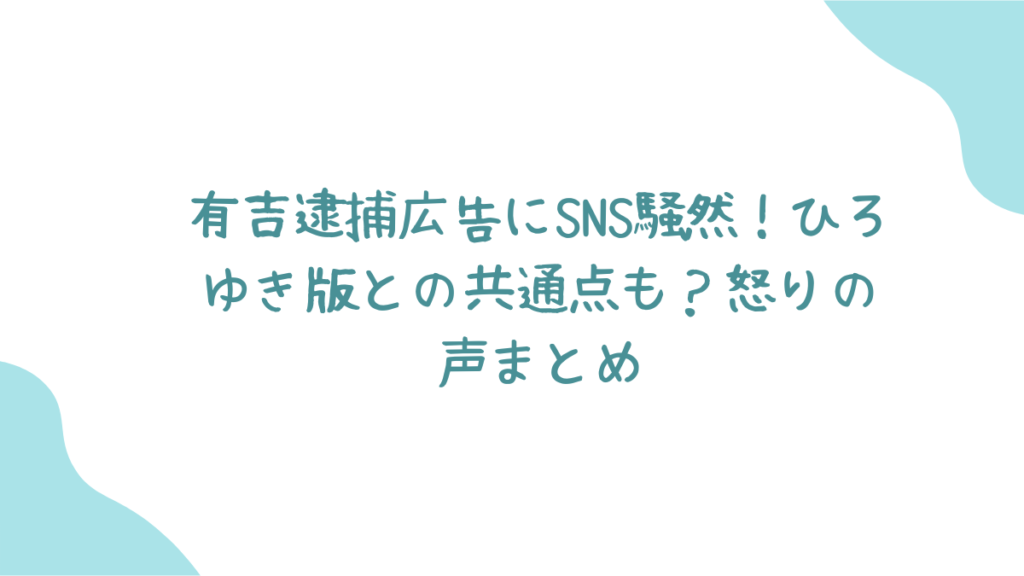 いや〜、ほんとビックリするよね、あんな広告!😭 「有吉さんが逮捕」なんて、心臓に悪いってば! もちろん、これは悪質な偽広告なんだけど、SNSではたくさんの人が色んな反応をしてるみたい。一緒に見てみよっか!👀